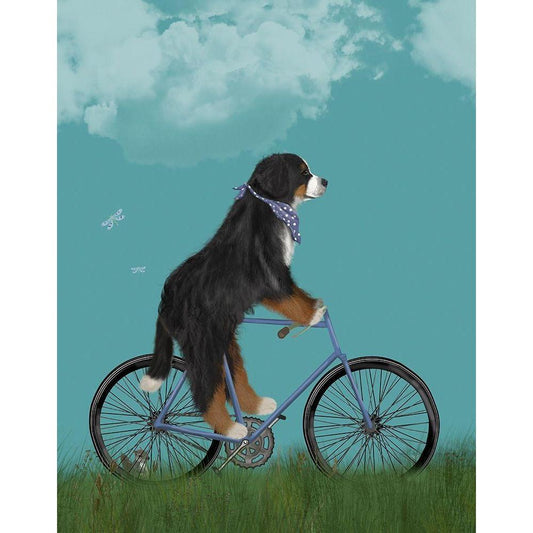 Bernese on Bicycle - Sky Black Modern Wood Framed Art Print with Double Matting by Fab Funky