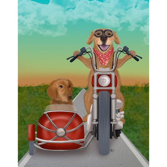 Golden Retriever Chopper and Sidecar Black Modern Wood Framed Art Print with Double Matting by Fab Funky
