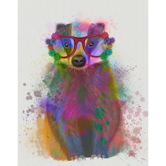 Badger Rainbow Splash Black Modern Wood Framed Art Print with Double Matting by Fab Funky