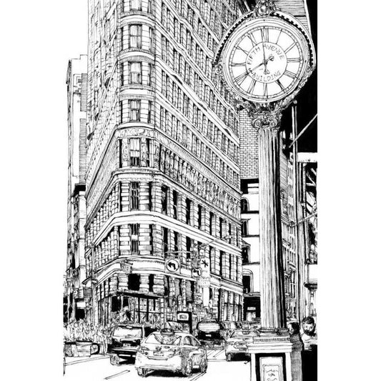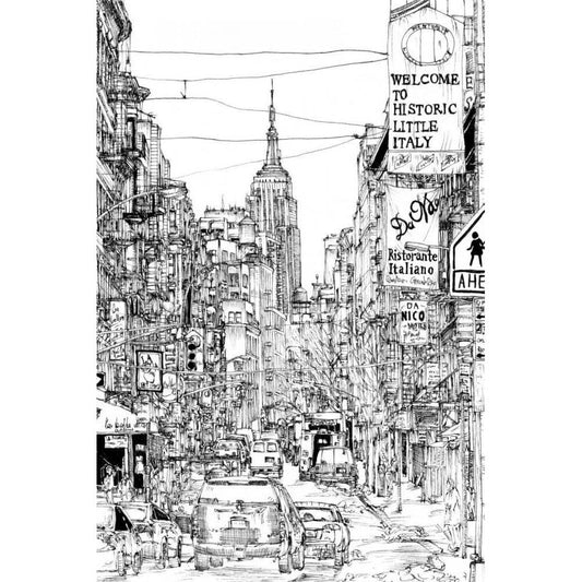 BandW City Scene I Gold Ornate Wood Framed Art Print with Double Matting by Wang, Melissa