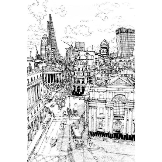BandW City Scene X Gold Ornate Wood Framed Art Print with Double Matting by Wang, Melissa
