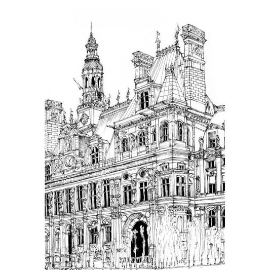 BandW City Scene VII Gold Ornate Wood Framed Art Print with Double Matting by Wang, Melissa