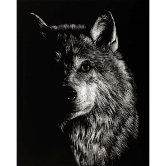 Scratchboard Wolf II Gold Ornate Wood Framed Art Print with Double Matting by Chapman, Julie T.