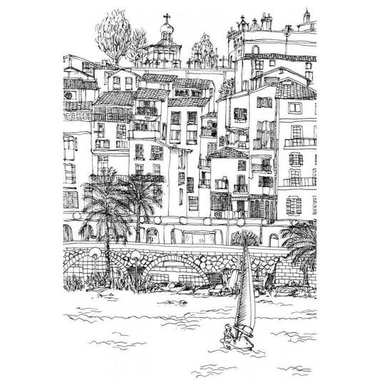 BandW City Scene IX Gold Ornate Wood Framed Art Print with Double Matting by Wang, Melissa