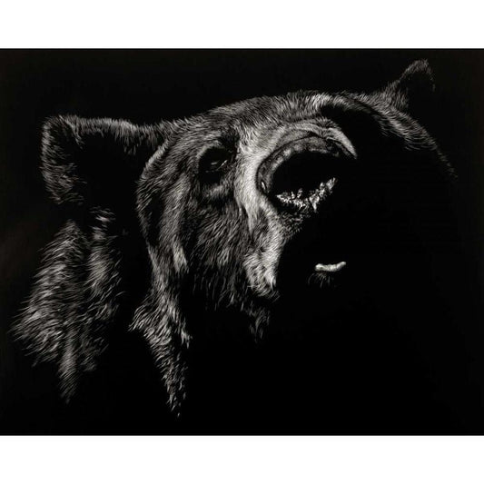 Scratchboard Wolf I Gold Ornate Wood Framed Art Print with Double Matting by Chapman, Julie T.