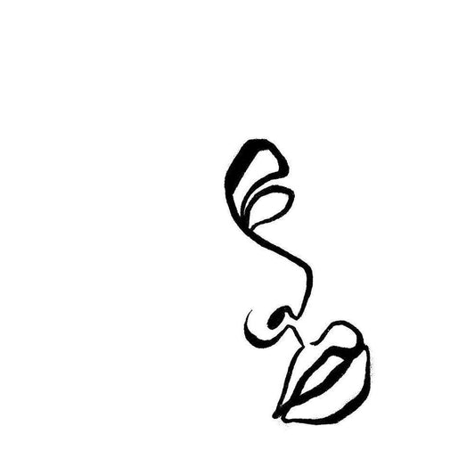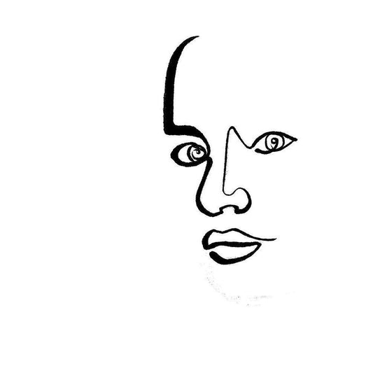 Scribble Side Face Gold Ornate Wood Framed Art Print with Double Matting by OnRei