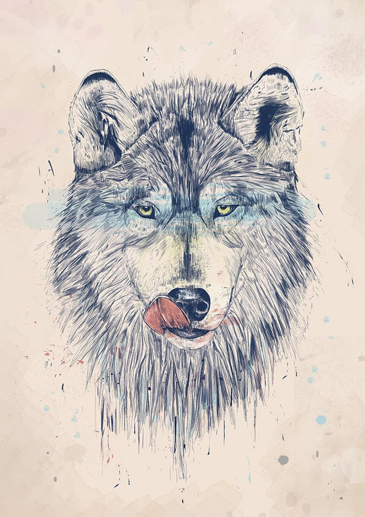 Deer wolf White Modern Wood Framed Art Print with Double Matting by Solti, Balazs