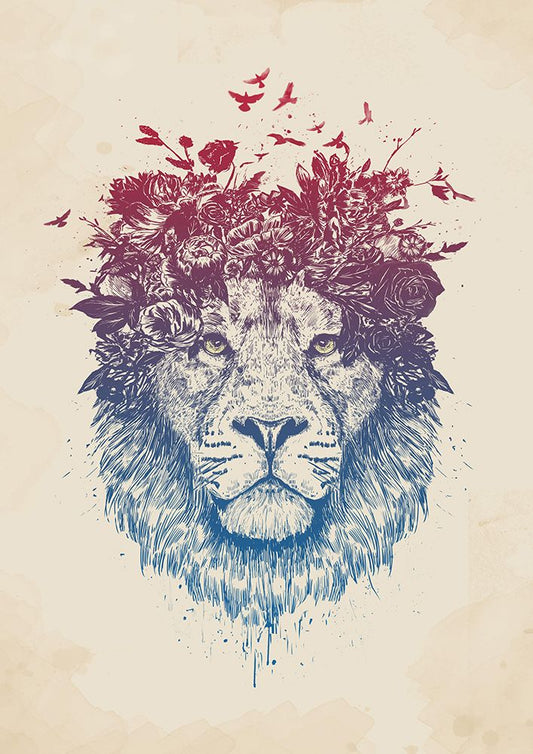 Floral lion White Modern Wood Framed Art Print with Double Matting by Solti, Balazs