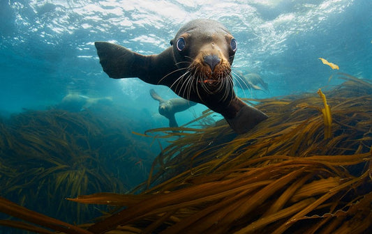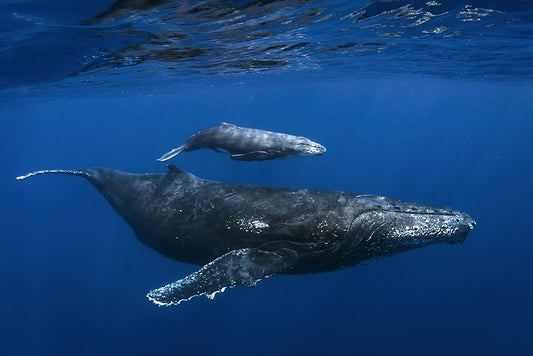 Humpback Whales White Modern Wood Framed Art Print with Double Matting by Peneau, Cedric