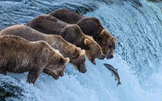 No Chance For Salmon Run White Modern Wood Framed Art Print with Double Matting by Pingwei Pan, Joy