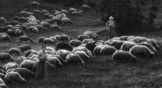Necks White Modern Wood Framed Art Print with Double Matting by Pozzi, Marco