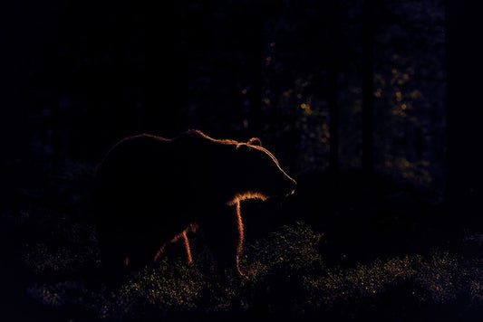 Brown Bear In Backlight White Modern Wood Framed Art Print with Double Matting by Rand, Larissa