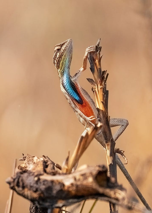 Fan-Throated Lizard In Concert! White Modern Wood Framed Art Print with Double Matting by Dhanorkar, Saurabh