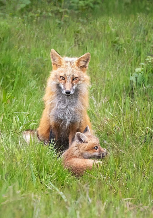 Foxes White Modern Wood Framed Art Print with Double Matting by Ji, Shirley