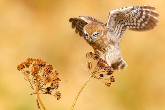 Little Owl White Modern Wood Framed Art Print with Double Matting by Manusevich, David