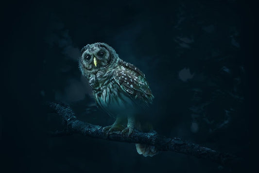 Little Owl White Modern Wood Framed Art Print with Double Matting by Manusevich, David