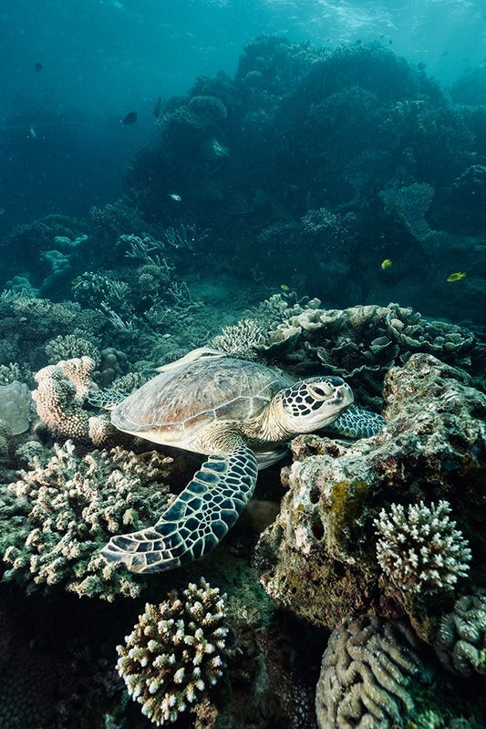 Sunlight And Green Turtle White Modern Wood Framed Art Print with Double Matting by Gabriel, Barathieu