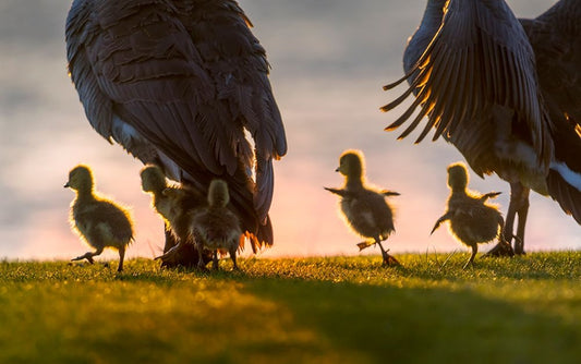 morning fog on swan lake White Modern Wood Framed Art Print with Double Matting by Liu, Dawei