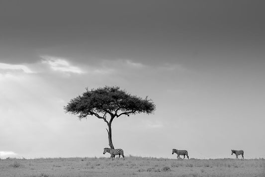 Zebra And Tree White Modern Wood Framed Art Print with Double Matting by Li, Min