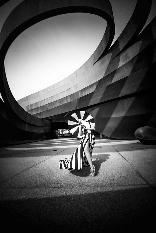 With the wind White Modern Wood Framed Art Print with Double Matting by Abu, Dekel