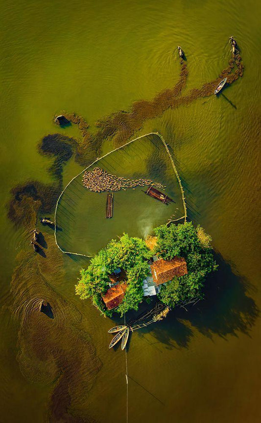 Foggy morning White Modern Wood Framed Art Print with Double Matting by Zhong, John-Mei