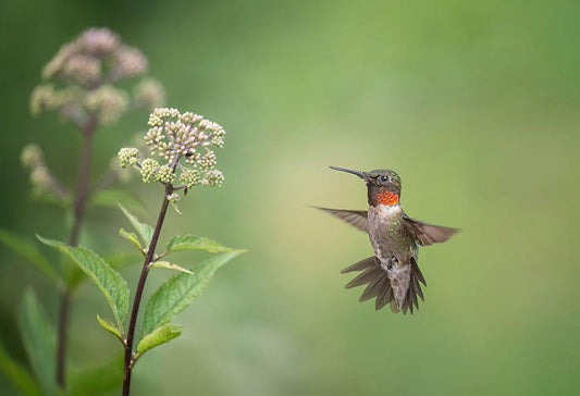 Hummingbird White Modern Wood Framed Art Print with Double Matting by Wang, Max