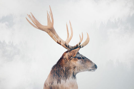 Stag White Modern Wood Framed Art Print with Double Matting by Beata, Angyalosi