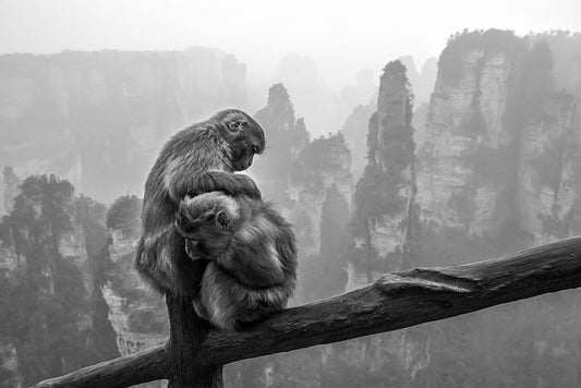 Cheetah Cub With Mom White Modern Wood Framed Art Print with Double Matting by Fischer, Jie