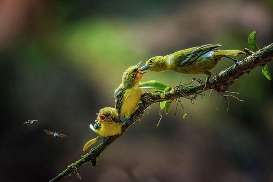 A Yellow Birds White Modern Wood Framed Art Print with Double Matting by Setiadi, Ajar