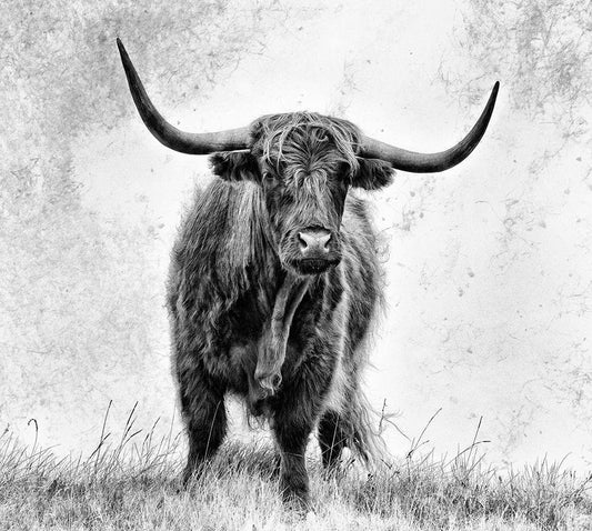 Highlander And Calf White Modern Wood Framed Art Print with Double Matting by van den, Jaap