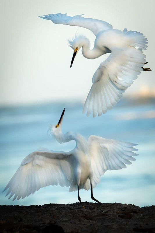 Snowy Egret Tango White Modern Wood Framed Art Print with Double Matting by Khataw, Ali
