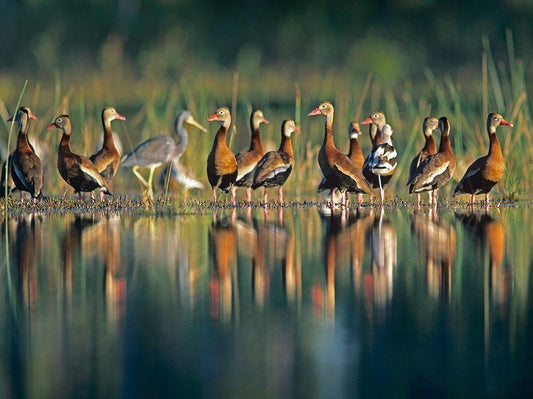 Black-bellied Whistling Ducks White Modern Wood Framed Art Print with Double Matting by Fitzharris, Tim