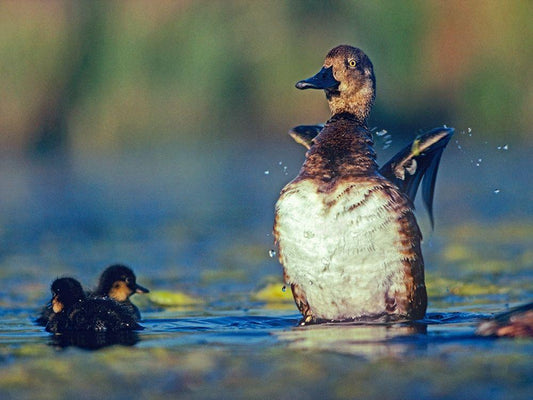 Lesser Scaup Female and Young White Modern Wood Framed Art Print with Double Matting by Fitzharris, Tim