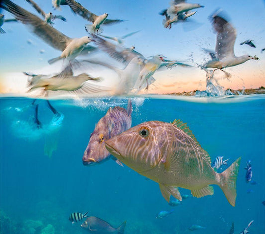 Snapper and Gulls-Coral Coast-Western Australia White Modern Wood Framed Art Print with Double Matting by Fitzharris, Tim