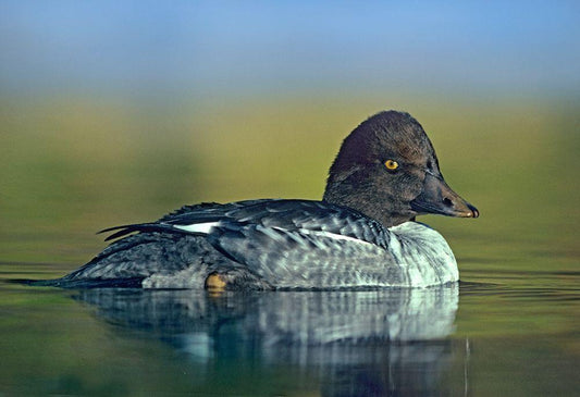 Common Golden-eye Duck Female White Modern Wood Framed Art Print with Double Matting by Fitzharris, Tim