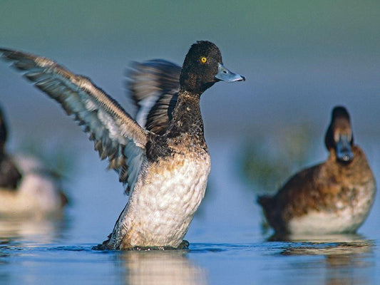 Lesser Scaup Duck I White Modern Wood Framed Art Print with Double Matting by Fitzharris, Tim