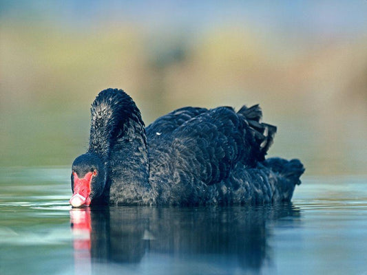 Black Swan Sipping Water White Modern Wood Framed Art Print with Double Matting by Fitzharris, Tim