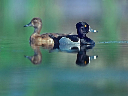 Ring-necked Drake and Hen White Modern Wood Framed Art Print with Double Matting by Fitzharris, Tim