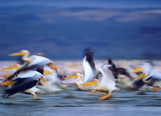 African White Pelicans White Modern Wood Framed Art Print with Double Matting by Fitzharris, Tim