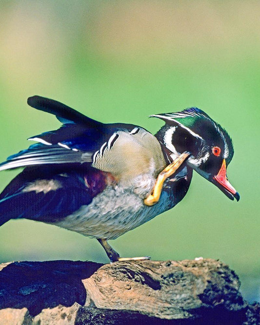 Wood Duck Drake Scratching White Modern Wood Framed Art Print with Double Matting by Fitzharris, Tim