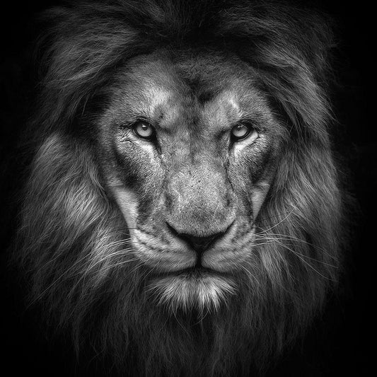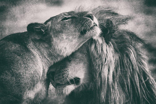 Lion Family White Modern Wood Framed Art Print with Double Matting by Vidak, Vedran