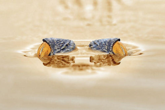 Crocodile - The Gold Eye White Modern Wood Framed Art Print with Double Matting by Priyadi, Andri