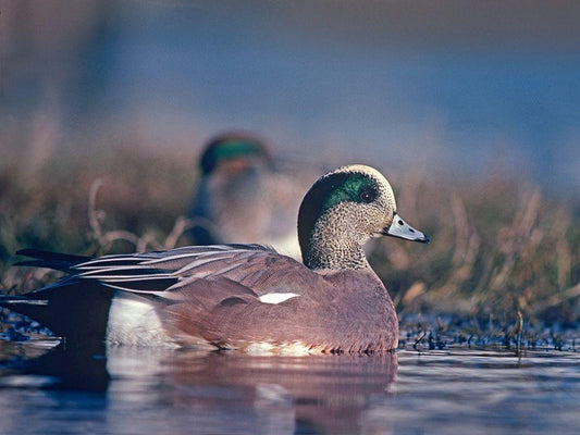 American Wigeon Drake with Hen White Modern Wood Framed Art Print with Double Matting by Fitzharris, Tim