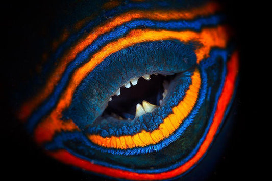 Orange-Lined Triggerfish White Modern Wood Framed Art Print with Double Matting by Gabriel, Barathieu