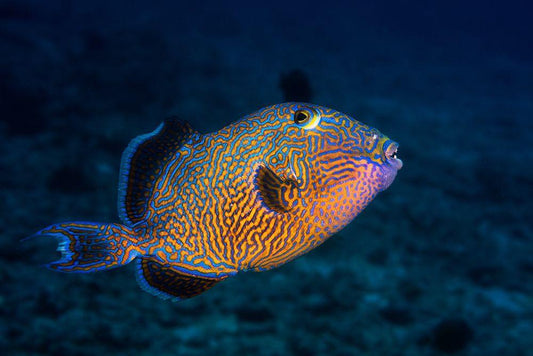 Blue Triggerfish White Modern Wood Framed Art Print with Double Matting by Gabriel, Barathieu