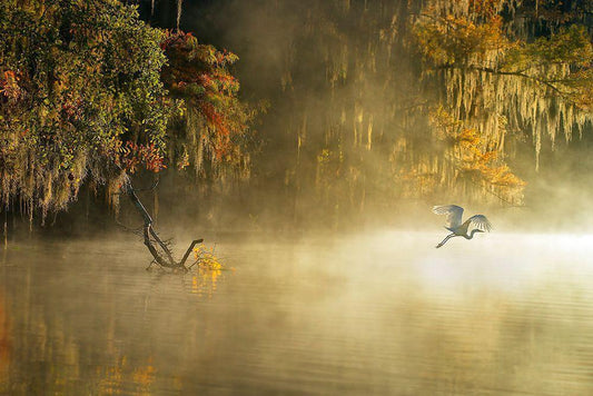 Egret White Modern Wood Framed Art Print with Double Matting by Zhu, Hua