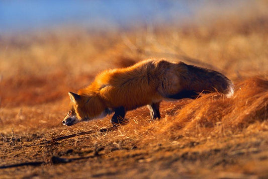 Red Fox Stalking White Modern Wood Framed Art Print with Double Matting by Fitzharris, Tim