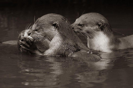 Asiatic otters-Sabah-Malayasia Sepia White Modern Wood Framed Art Print with Double Matting by Fitzharris, Tim