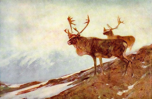 Caribou White Modern Wood Framed Art Print with Double Matting by Rungius, Carl