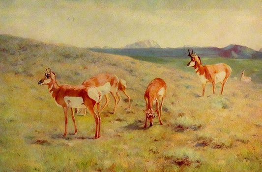 Pronghorns White Modern Wood Framed Art Print with Double Matting by Rungius, Carl